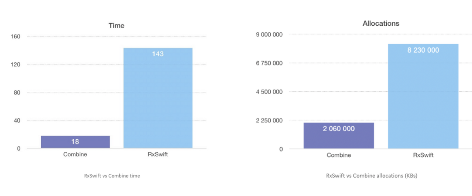 또한 이정도의 시간과 메모리 할당 측면에서 Combine이 압도적으로 우세합니다.