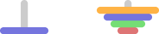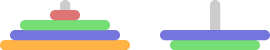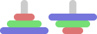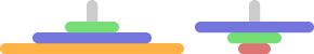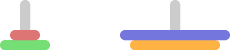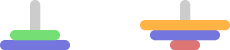 On the left rod, disks can be placed in decreasing order of size (smaller disks on top of bigger ones). On the right rod, disks can be placed in increasing order of size (bigger disks on top of smaller ones). Note that it is not permissible to place two disks of equal size on top of each other. The initial disks cannot be moved.