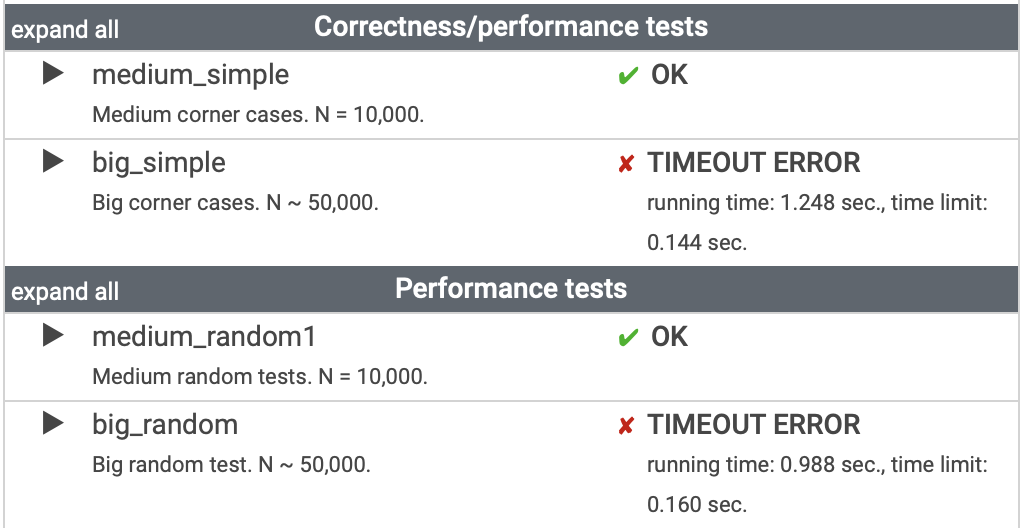 이렇게 100프로 통과가 아닌 큰 샘플의 경우 타임아웃이 났다😭