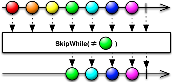let subject = PublishSubject<Int>() let disposeBag = DisposeBag() subject .skipWhile({ (num) -> Bool in num == 3 )} .subscribe({ num in print("\(num Finished!)") }) .disposed(by: disposeBag) subject.onNext(1) subject.onNext(2) subject.onNext(3) subject.onNext(4) subject.onCompleted() // 3 Finished! // 4 Finished!자 여기선 3이여야 되는 조건을 주었는데 4는 왜 방출될까요?