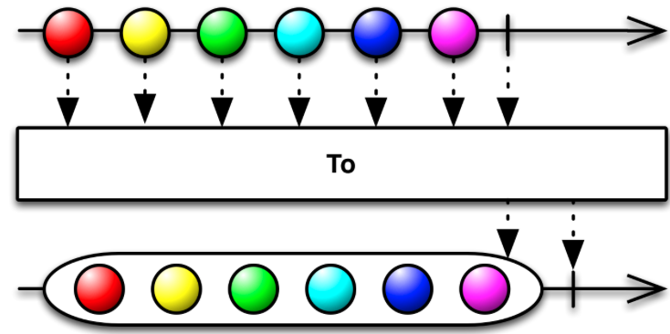 let disposeBag = DisposeBag() Observable.of(1, 2, 3, 4, 5, 6) .toArray() .subscribe(onNext: { print($0) }) .disposed(by: disposeBag) // [1, 2, 3, 4, 5, 6]이렇게 정말 간단하게 모두 하나의 어레이로 묶어 방출됩니다.