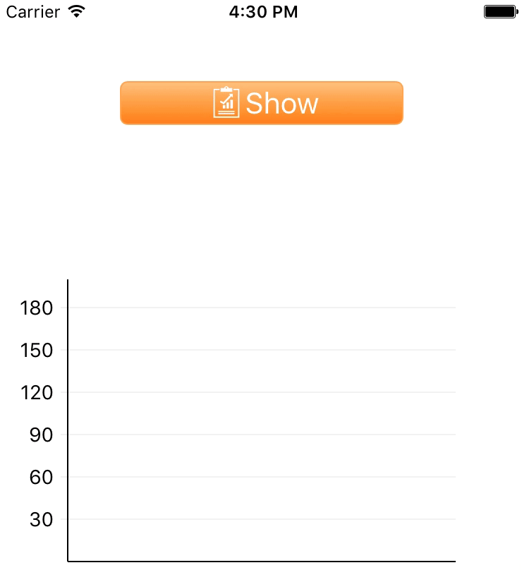 import Macaw class MyView: MacawView { static let scores: [Double] = [30, 55, 77, 92, 100] static let barColors = [0xffd505, 0xbf1a04, 0xf08c00, 0xd1aae3, 0x8fcc16].map { val in Color(val: val) } required init?(coder aDecoder: NSCoder) { let button = MyView.configureButton() let chart = MyView.configureChart(button.contents[0]) super.init(node: Group(contents: [button, chart]), coder: aDecoder) } private static func configureButton() -> Group { let shape = Shape( form: Rect(x: -100, y: -15, w: 200, h: 30).round(r: 5), fill: LinearGradient(degree: 90, from: .green, to: .seaGreen), stroke: Stroke(fill: Color.green, width: 1)) let text = Text( text: "Show me score", font: Font(name: "Serif", size: 19), fill: Color.white, align: .mid, baseline: .mid, place: .move(dx: 0, dy: 0), opaque: false) let dx = UIScreen.main.bounds.width / 2 return Group(contents: [shape, text], place: .move(dx: Double(dx), dy: 75)) } private static func configureChart(_ button: Node) -> Group { var items: [Node] = [] for i in 1...5 { let y = 300 - Double(i) * 60.0 items.append(Line(x1: 0, y1: y, x2: 300, y2: y).stroke(fill: Color(val: 0xF0F0F0))) items.append(Text(text: "\(i*20)", align: .max, baseline: .mid, place: .move(dx: -10, dy: y))) } items.append(configureBars(button)) items.append(Line(x1: 0, y1: 300, x2: 300, y2: 300).stroke()) items.append(Line(x1: 0, y1: 0, x2: 0, y2: 300).stroke()) return Group(contents: items, place: .move(dx: 50, dy: 200)) } private static func configureBars(_ button: Node) -> Group { var items: [Node] = [] var animations: [Animation] = [] for (i, item) in scores.enumerated() { let bar = Shape( form: Rect(x: Double(i) * 50 + 25, y: 100, w: 30, h: item * 3), fill: LinearGradient(degree: 90, from: barColors[i], to: barColors[i].with(a: 0.3)), place: .scale(sx: 1, sy: 0)) items.append(bar) animations.append(bar.placeVar.animation(to: .move(dx: 0, dy: 200 - (item * 3)), delay: Double(i) * 0.1)) } _ = button.onTap { _ in animations.combine().play() } return Group(contents: items, place: .move(dx: 0, dy: 0)) } }우선 세부분으로 나눠져있습니다.