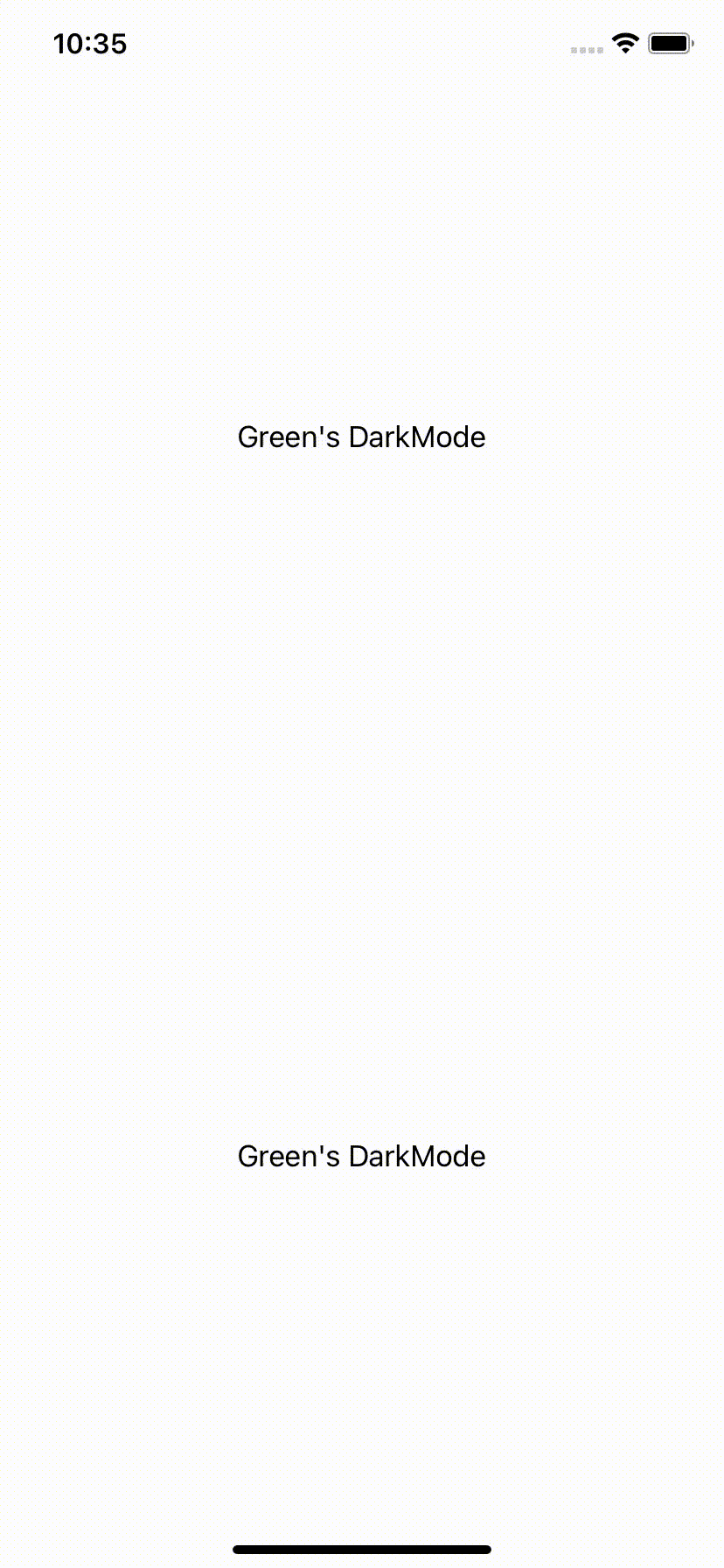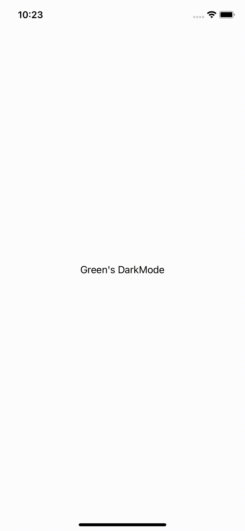 import SwiftUI struct ContentView: View { var body: some View { ZStack { Color("Background") .edgesIgnoringSafeArea(.all) Text("Green's DarkMode") .padding() } } }정말 간단히 ZStack을 이용해 현재 뷰에서 다크모드 시 전체 컬러를 적용될 수 있도록 합니다.