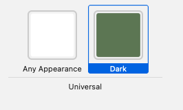 그리고 오른쪽에 하나 더 나오는 친구를 다크모드로 Appearances 값을 설정해주고 컬러를 원하는걸로 바꿔줍니다.