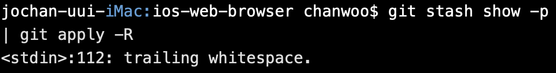 git stash drop -. git stash show -p | git apply -R : stash 되돌리기 (실수로 잘못 임시저장한것 되돌리기)