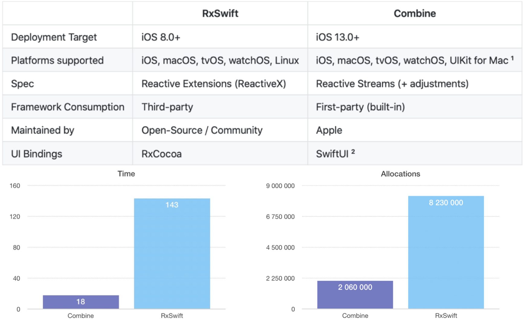 당연 빌트인 프레임워크로 RxSwift보다 성능이 뛰어납니다.