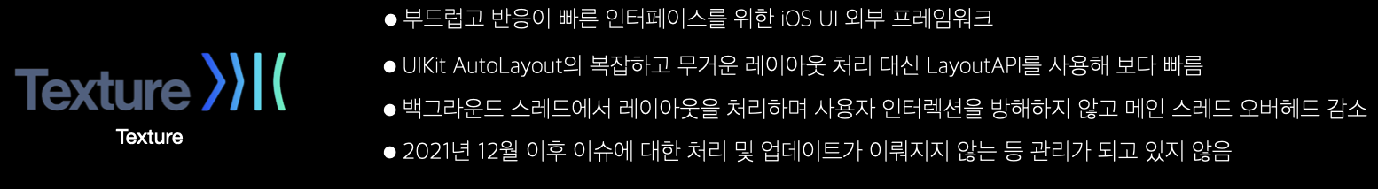 이유는 지는해인 UIKit을 제외, 관리가 안되는 라이브러리인 Texture를 제외합니다.