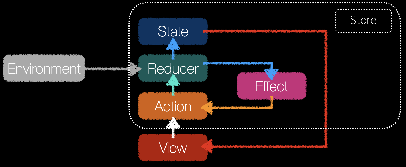 우선 TCA는 엘름 아키텍쳐, 리덕스 등에서 영감을 받아 PointFree에서 만든 상태관리 기반 단방향 아키텍쳐입니다.