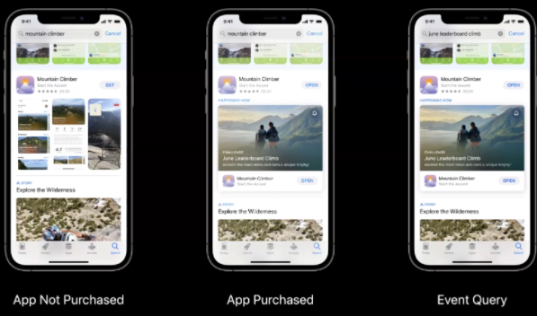 이처럼 유저 다운에 따라 앱 스토어 검색 결과 시 노출되는 스크린샷 및 이벤트 카드를 달리 할 수 있습니다.