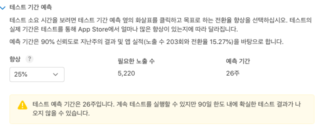 옵션으로 테스트 기간 예측은 아래처럼 의미 있는 결과 도출을 위해 어느 정도 테스트의 소요 시간이 걸리는지 추정해 줄 수 있어요.
