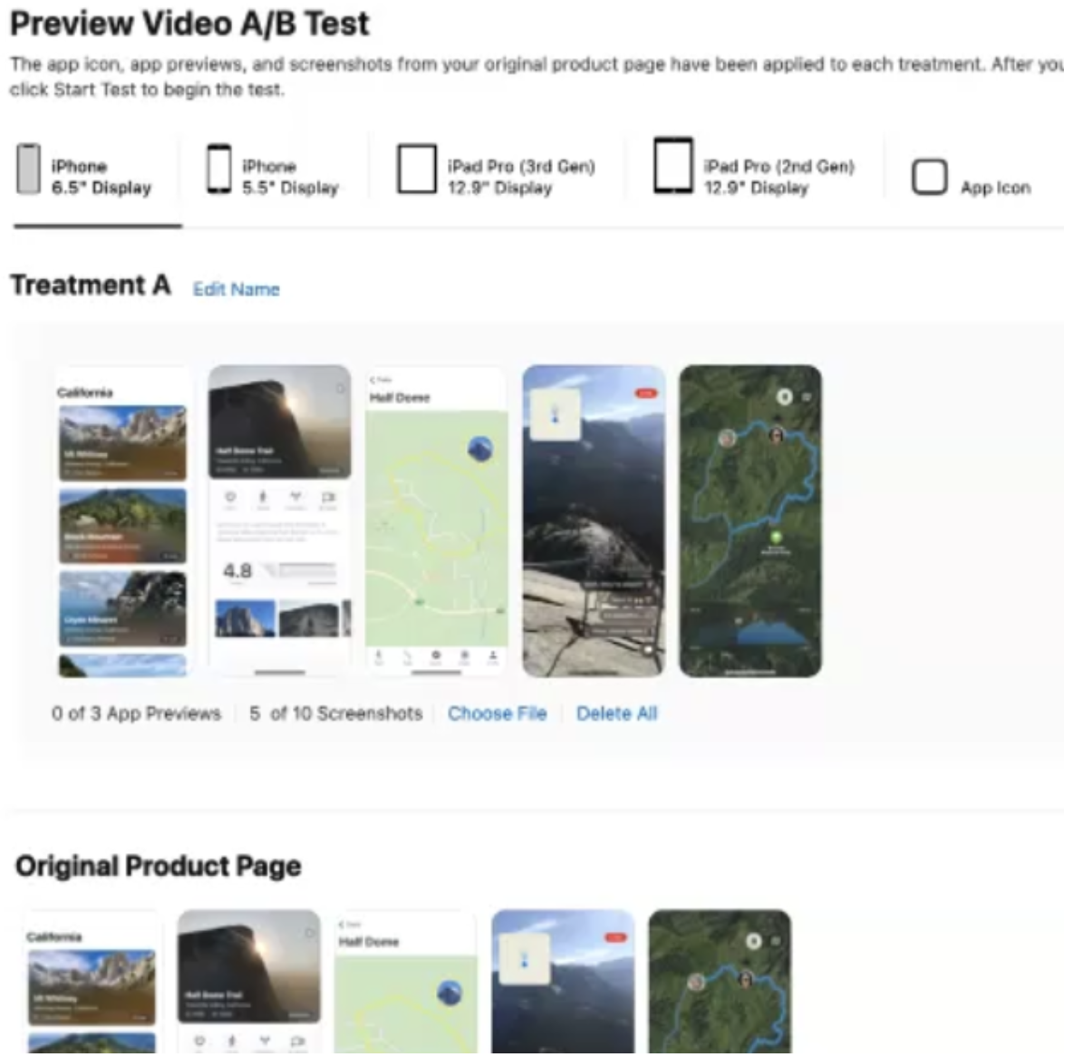 보시는것처럼 제품 페이지 최적화는 3가지인 아이콘 / 스크린샷 / 프리뷰 화면의 커스텀 설정으로 이뤄져있습니다.