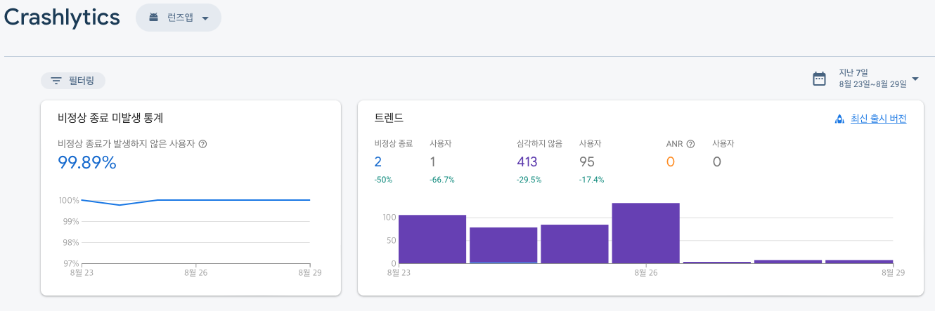 이런 분석을 하기 위해서는 예를들어 파이어베이스의 crashlytics 같은 에러 리포트 및 분석 툴을 이용해 파악할 수 있습니다.