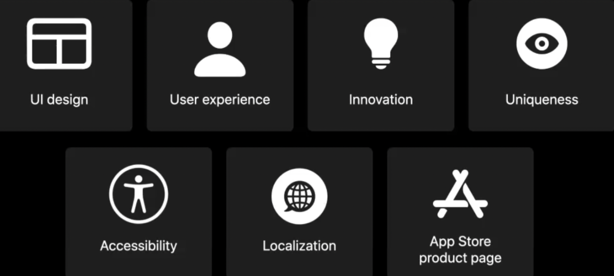 애플에서 자체적으로 추천할 앱을 찾을때는 위와 같은 7가지의 요소를 리스트화 하여 체크한다고 해요.
