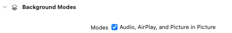 🙋🏻 Signing & Capabilites > Background Modes > Audio, Airplay, and Picture in Picture