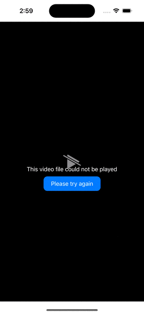import AVKit final public class VideoPlayerViewModel: ObservableObject { enum ContentType { case video case unknown } @Published var contentURL: String @Published var remainingRetries: Int var canPlay: Bool { let type = filterByExtension(url: contentURL) return type == .video } public init( contentURL: String, remainingRetries: Int = 5 ) { self.contentURL = contentURL self.remainingRetries = remainingRetries } } // MARK: - Business Logic extension VideoPlayerViewModel { // 동영상 확장자 체크 private func filterByExtension(url: String) -> ContentType { let videoExtensions: [String] = [ "caf", "ttml", "au", "ts", "mqv", "pls", "flac", "dv", "amr", "mp1", "mp3", "ac3", "loas", "3gp", "aifc", "m2v", "m2t", "m4b", "m2a", "m4r", "aa", "webvtt", "aiff", "m4a", "scc", "mp4", "m4p", "mp2", "eac3", "mpa", "vob", "scc", "aax", "mpg", "wav", "mov", "itt", "xhe", "m3u", "mts", "mod", "vtt", "m4v", "3g2", "sc2", "aac", "mp4", "vtt", "m1a", "mp2", "avi", "m3u8", ] guard let fileExtension = URL(string: url)?.pathExtension.lowercased() else { return .unknown } if videoExtensions.contains(fileExtension) { return .video } else { return .unknown } } // 영상 재생 재시도 @MainActor func retryPlayVideo() async -> Bool { remainingRetries -= 1 return remainingRetries > 0 } }여기선 재시도에 대한 로직들이 담겨 있습니다.