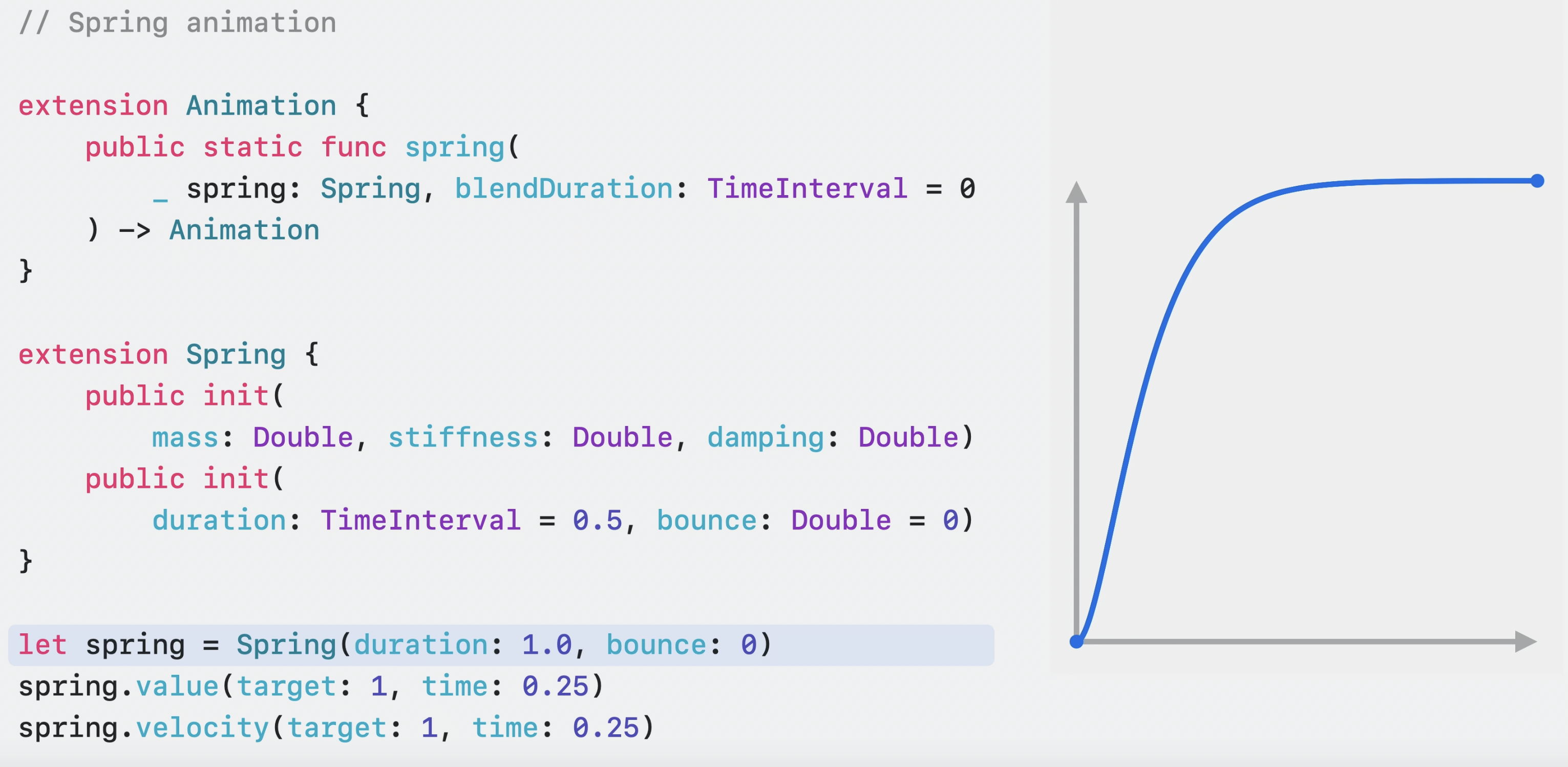 스프링 애니메이션도 물론 기본적으로 타이밍 애니메이션처럼 내장되어 있는 종류가 있습니다.