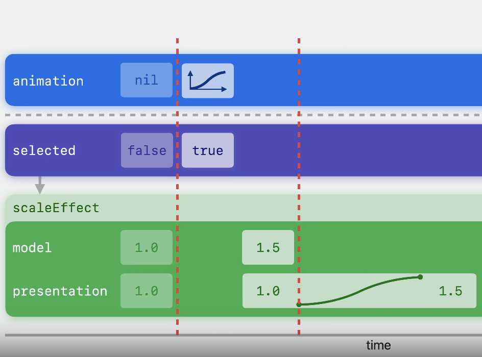 그러다가 scaleEffect와 같은 효과에 도달하면 이 애니메이션이 scale factor를 보간하는데 사용하죠.