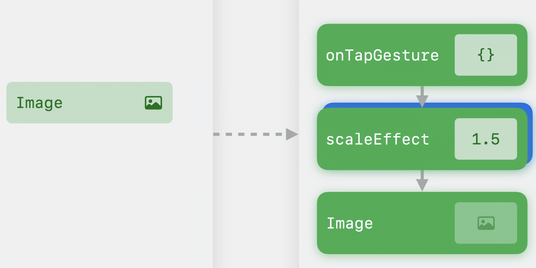 즉 여기선 onTapGesture > scaleEffect > Image 순인거죠.