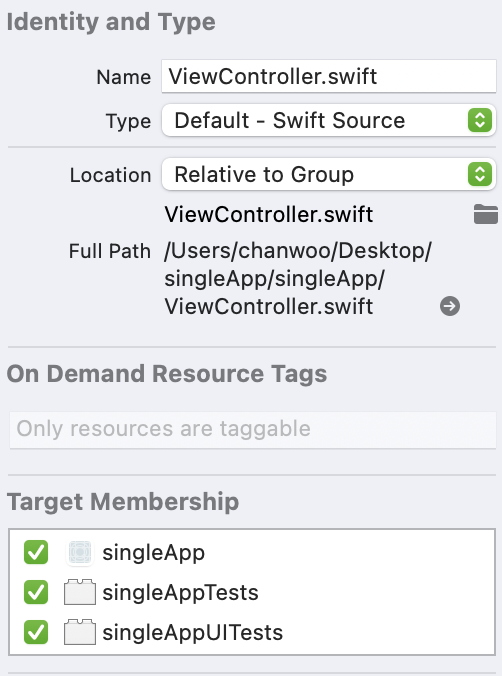 또한, Xcode에서 테스트 파일을 생성하고 테스트할 모듈을 인스펙터에서 타켓 멤버쉽 체크를 해주어야