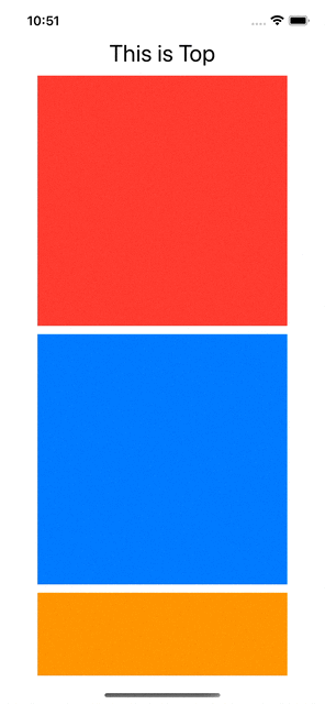 struct ContentView: View { @State var isMovedTop: Bool = false @State var headerSize: CGSize = .zero let color: [Color] = [.red, .blue, .orange, .green, .black, .indigo, .mint] var body: some View { ScrollViewRepresentable( isMovedTop: $isMovedTop, headerSize: $headerSize ) { VStack(spacing: 10) { Text("This is Top") .font(.title) .onReadSize { headerSize = $0 } ForEach(color, id: \.self) { color in Rectangle() .fill(color) .frame(width: 300, height: 300) } Button( action: { isMovedTop = true }, label: { Text("Go to Top") } ) } } } }이렇게 단순할 수가 없습니다.