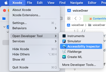 1️⃣ Xcode > Open Developer Tool > Accessibility Inspector