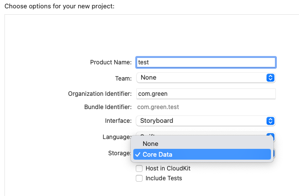 두가지 방법으로 Core Data 사용을 위한 환경을 설정할 수 있는데요.
