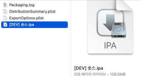 그럼 이제 익스포트된 폴더를 열어보면 요렇게 ipa 파일이 생성되었습니다!