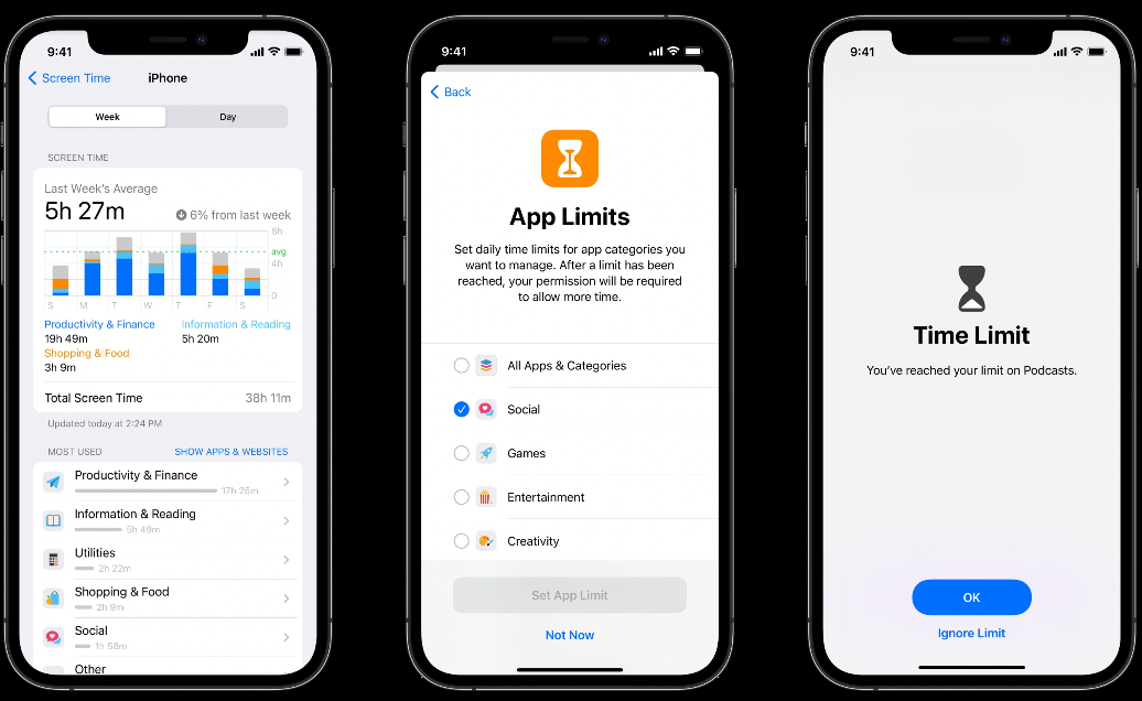 자녀들을 둔 부모님들이 자녀의 디바이스에서 앱 사용 시간들을 파악할 수 있고, 또 제한을 걸 수도 있습니다.