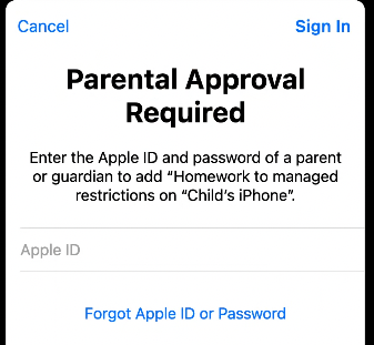 허용을 클릭하면 이제 보호자가 애플 계정을 통해 인증해야 합니다.