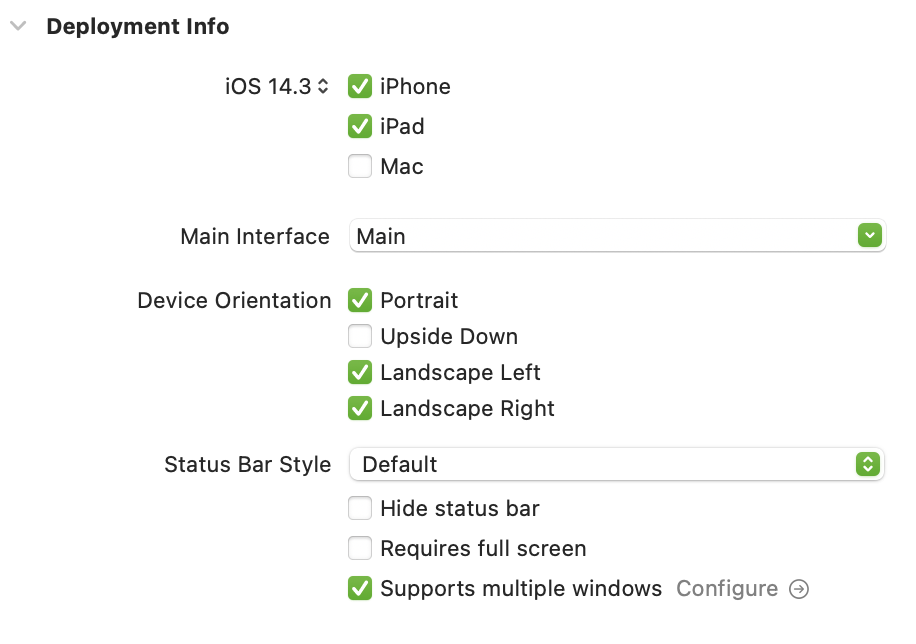 만약 Deployment Target이 iOS 13 이전이라면 간단하게 몇가지를 바꿔줌으로 이전과 같이 Xcode를 구성할 수 있음으로