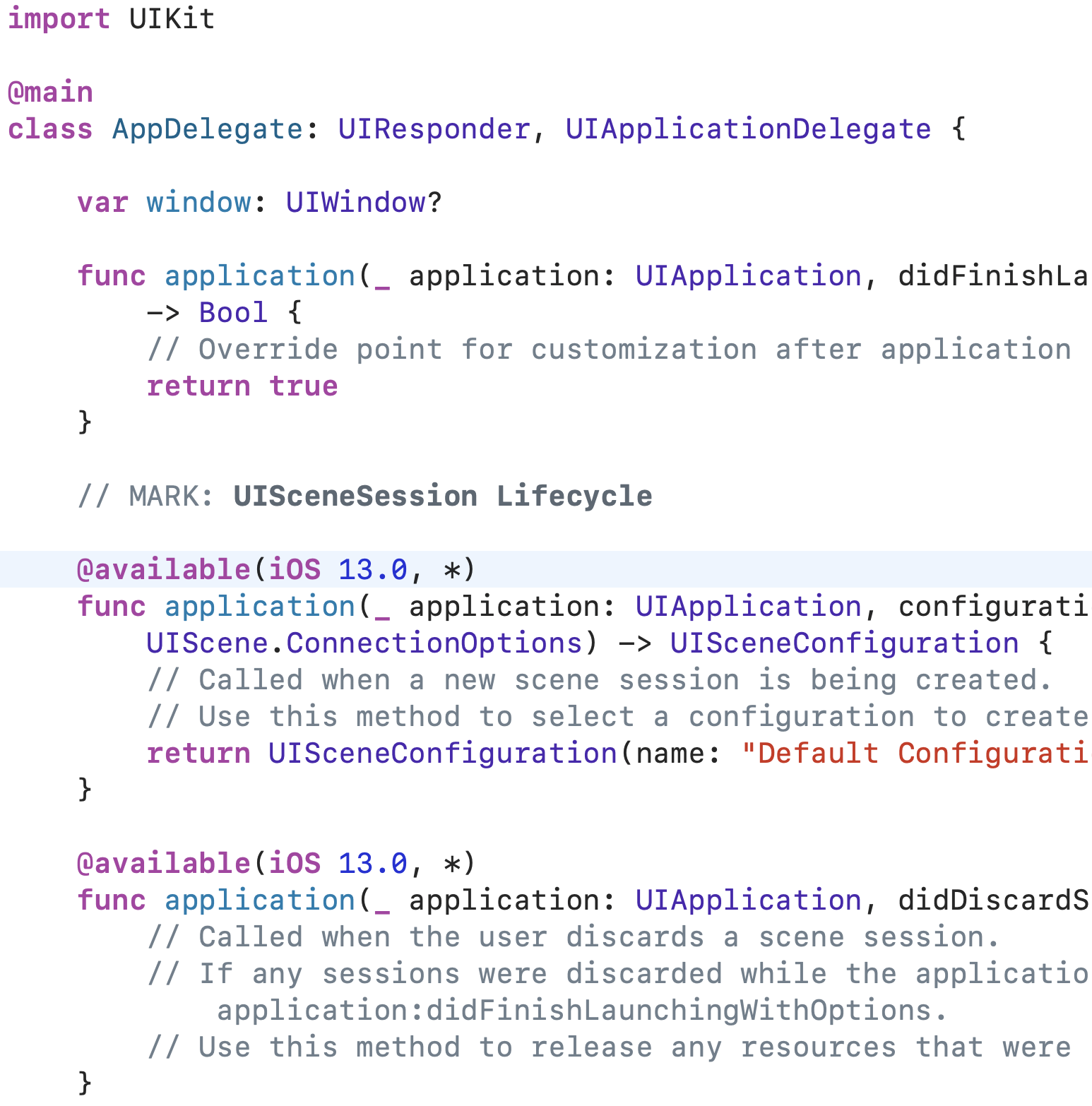 AppDelegate에서 모든걸 처리하게하면 안되는것인가? 그렇게된다면 iOS 13 버전 이전과 이후로 업데이트 하지 않은 기기에 대해 앱 지원도 동일하게 될것같은데 번거롭게 한 느낌이였다.