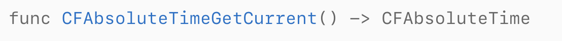 : 현재 Swift에서 시간 유틸리티를 지원하는 다양한 기존 함수들은 Deprecated되었고 위에서 설명한 CFAbsolute TimeGetCurrent