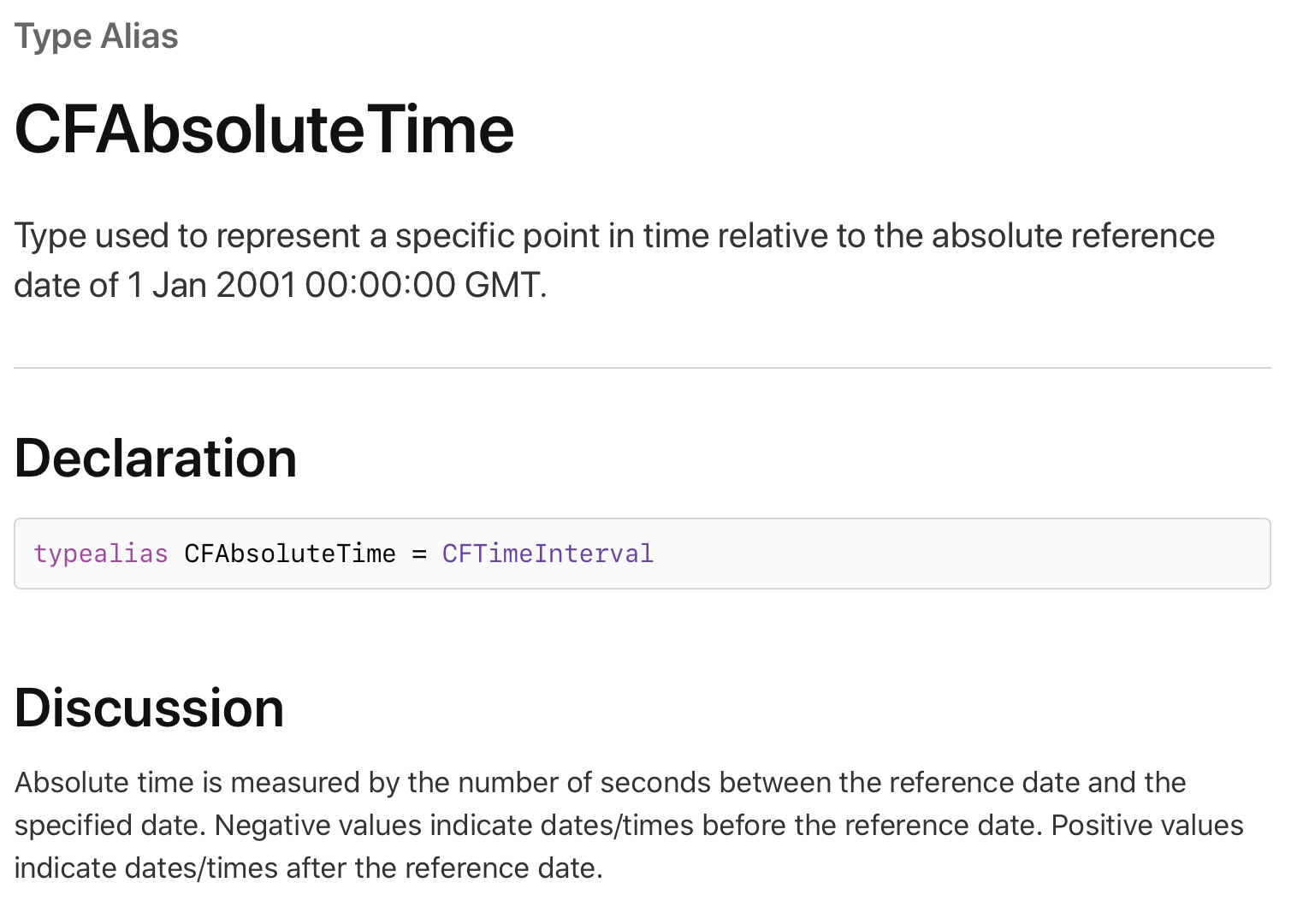 그럼 CFAbsolute TimeGetCurrent이 무엇인지 애플 공식 문서를 보면서 일단 알아가시죠!