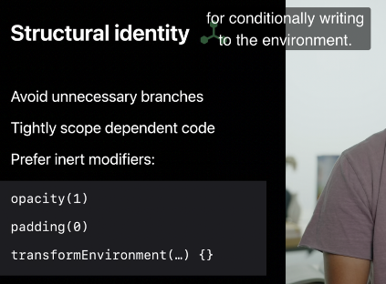 해당 WWDC 영상은 2021년에 공개된 "Demystify SwiftUI"라는 영상으로 후반부에 구조적인 식별자에 대해 설명하며 나옵니다.