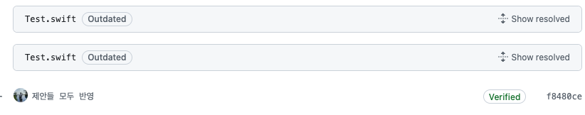 이렇게 로컬까지 담당자가 다시 작업하지 않아도 리뷰어가 제안한걸 바로 깃헙에서 반영 및 변경할 수 있는 편리한 Suggestion 기능이였습니다 😃