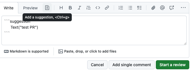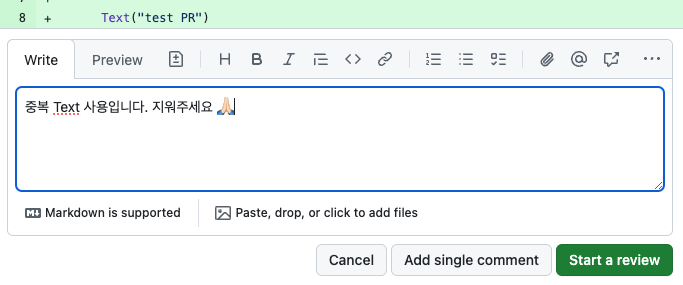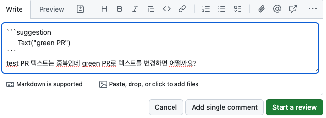 물론 여기서 제안할 코드를 작성하고 코멘트를 덧붙여서 왜 이런 코드를 제시했는지 등 의견을 남길 수도 있어요!