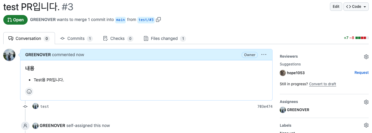 그럼 이렇게 PR 페이지에서 나타나게 됩니다.