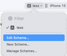 프로젝트를 열어 Edit Scheme을 클릭합니다.