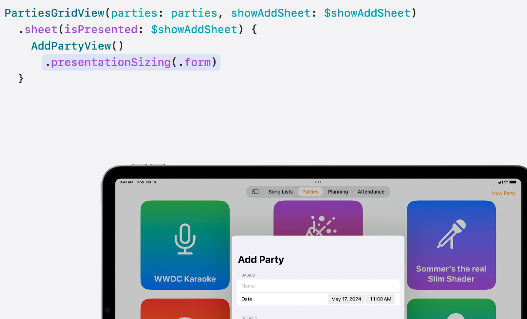즉, sheet 뷰 모디파이어를 통해 시트를 표시하고 크기 조절을 하는것이 이제 플랫폼 전체에서 통일되고 간소화 되었어요.