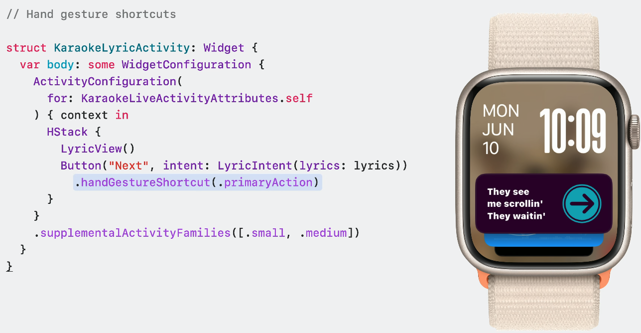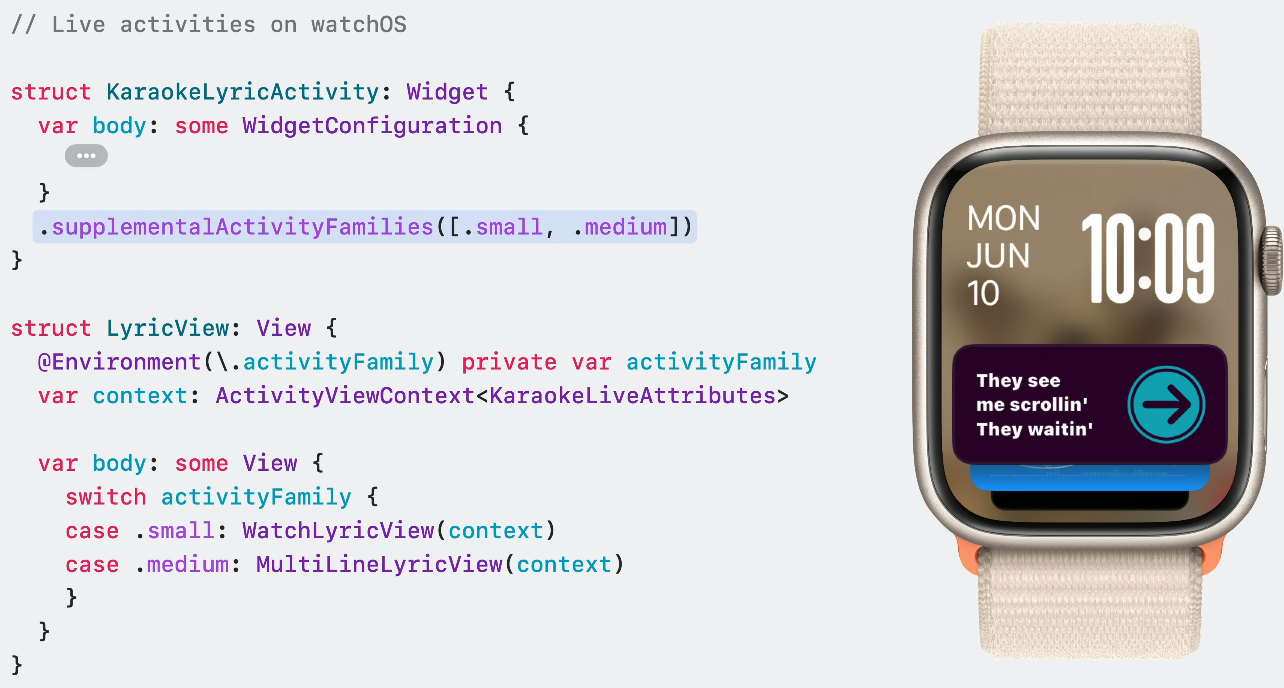 watchOS에서 supplementalActivityFamilies를 이용해 wathOS용 콘텐츠를 다듬어 더 멋지게 보여줄 수 있어요.