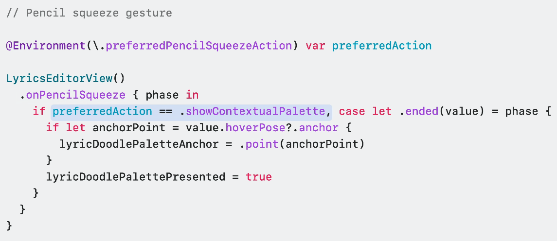 추가로, SwiftUI는 iPadOS 17.5에서 더블 탭과 스퀴즈 같은 애플 펜슬의 기능을 지원해줍니다.