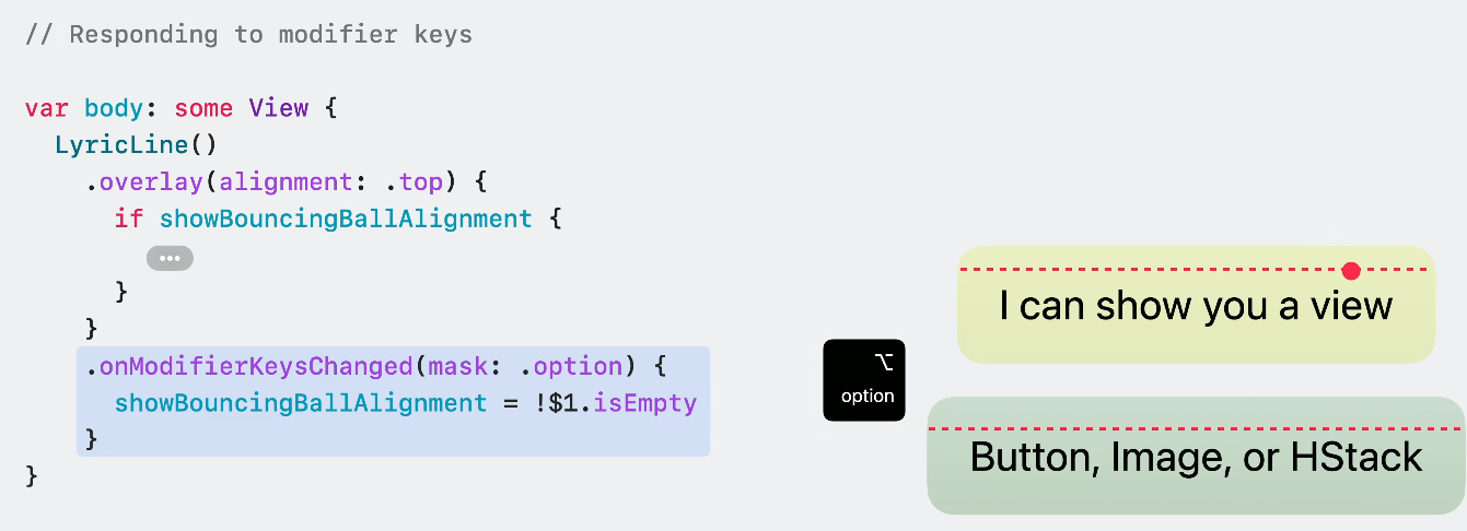 또한, 아래처럼 조금 더 작은 개념인 뷰에서 onModifierKeysChanged 메서드를 통해 키보드에 의한 상태 변화를 줄 수 있어요.