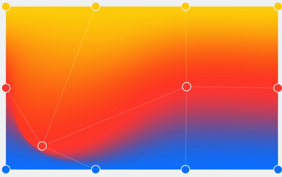 물론, 커스텀하게 구현하면서 많이 신경쓰고 다뤄야하겠지만 MeshGradient가 나오면서 이를 한번에 편리하게는 해줄 수 있습니다.