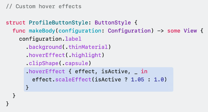 또한, visionOS에서 사용자 초점이나 손가락에 따라 해당 뷰의 hover 기능을 둘 수 있어요.