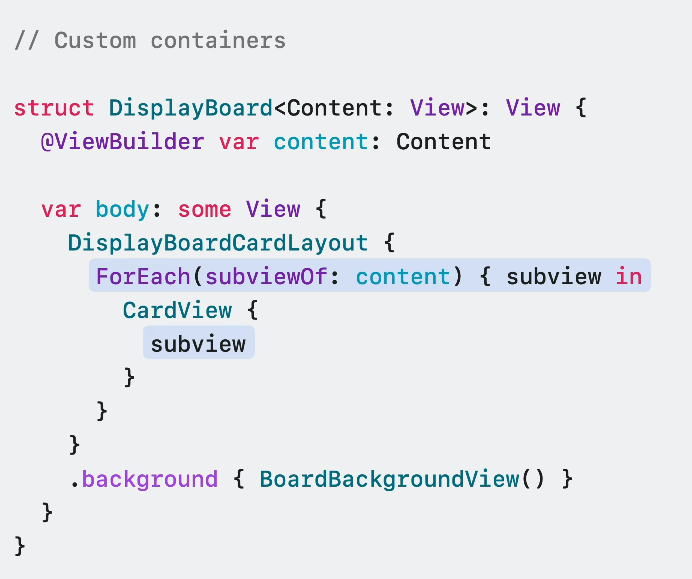 이런 커스텀한 컨테이너에 대해 더 자세히 알기 위해선 Demystify SwiftUI containers 세션을 봐야겠네요 🙋🏻