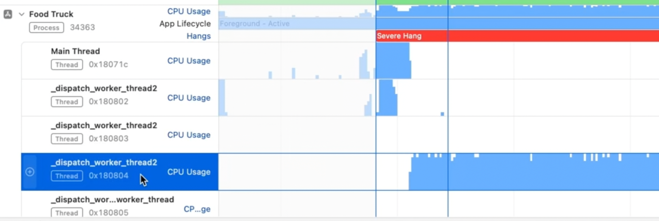 Xcode 14이전엔 행을 발견하고 진단하는 툴을 두가지 제공했습니다.
