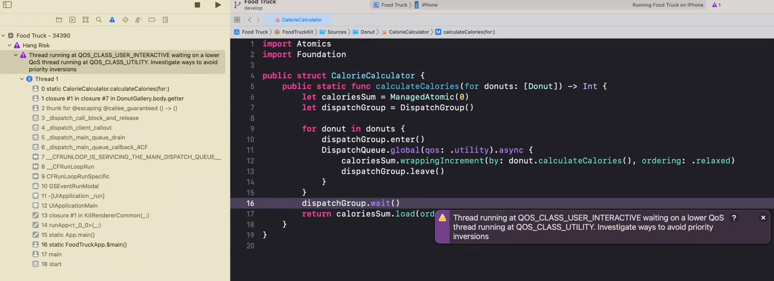 혹시 이 행에 대해 더 이해하고 제거하는 방법에 대해서는 WWDC 21에서 소개된 아래 섹션을 보시는걸 추천드립니다 🙋🏻