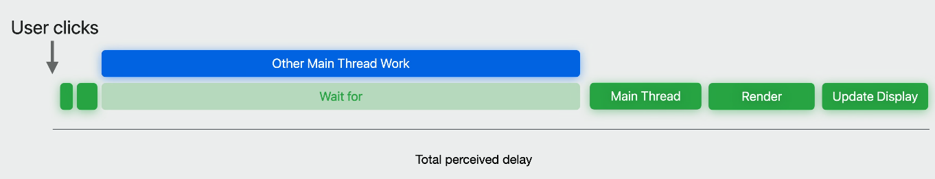 메인 스레드 도달전 이벤트 처리 단계와 이후의 렌더링 및 업데이트 단계는 일반적으로 딜레이 시간 예측이 가능합니다.