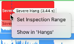 행에서 발생한 일에만 집중해보기 위해 타임라인에서 행 부분을 더블 탭하여 Set Inspection Range를 통해 좀 더 확대해 봅니다.