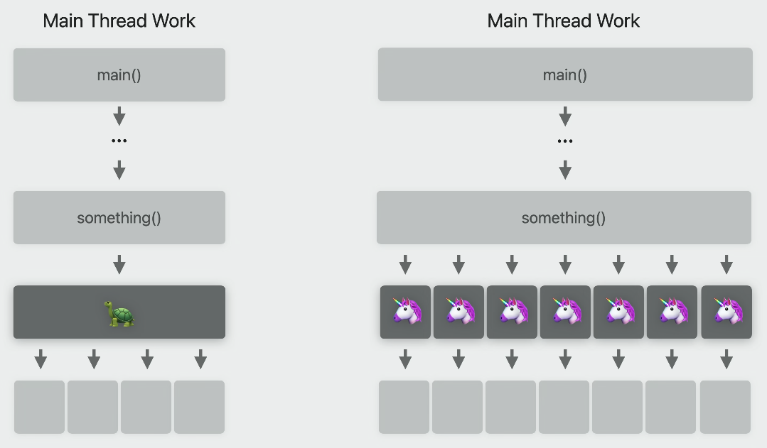 WWDC 세션에서는 행을 더 잘 이해할 수 있도록 실제 상황에 접목시켜 설명하고 있습니다.